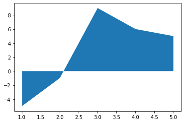 matplotlibでplt.fill_between(x座標, y座標)を使って、折れ線グラフと0(x軸)の間を塗りつぶすことができる。